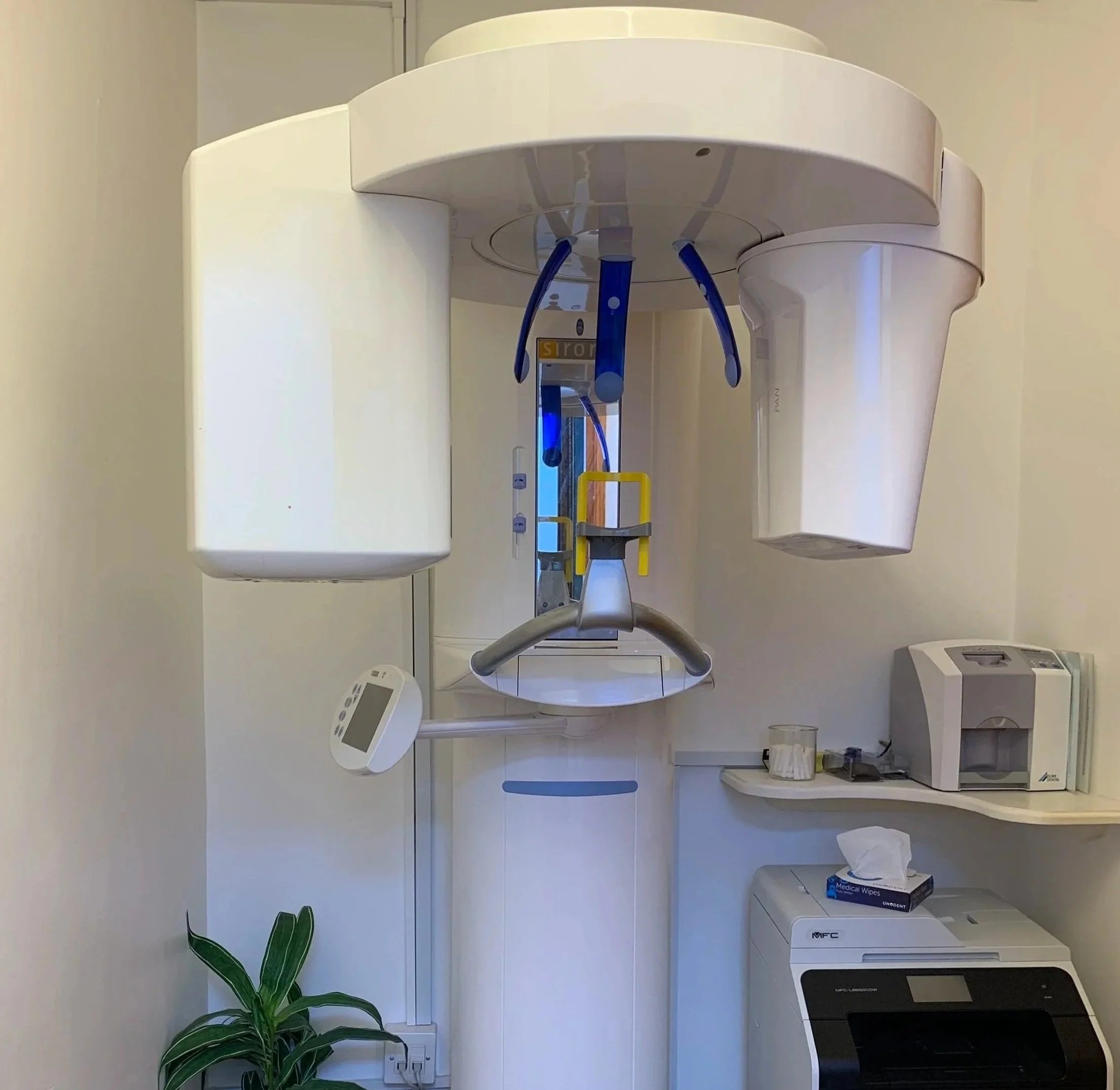 Our separate X-ray room contains a digital panoramic X-ray machine and a 3D CT scanner. These machines boast the latest imaging technology available with instant image production to allow prompt and accurate diagnosis of dental and oral tissues before and during treatment, whenever indicated.